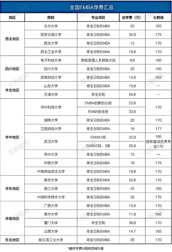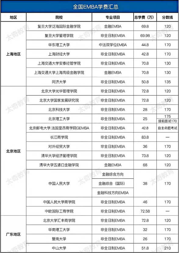 最近收到很多同學的私信,詢問EMBA學費的問題,下面太奇為大家整理了新的學費匯總,感興趣的朋友可以瀏覽一下