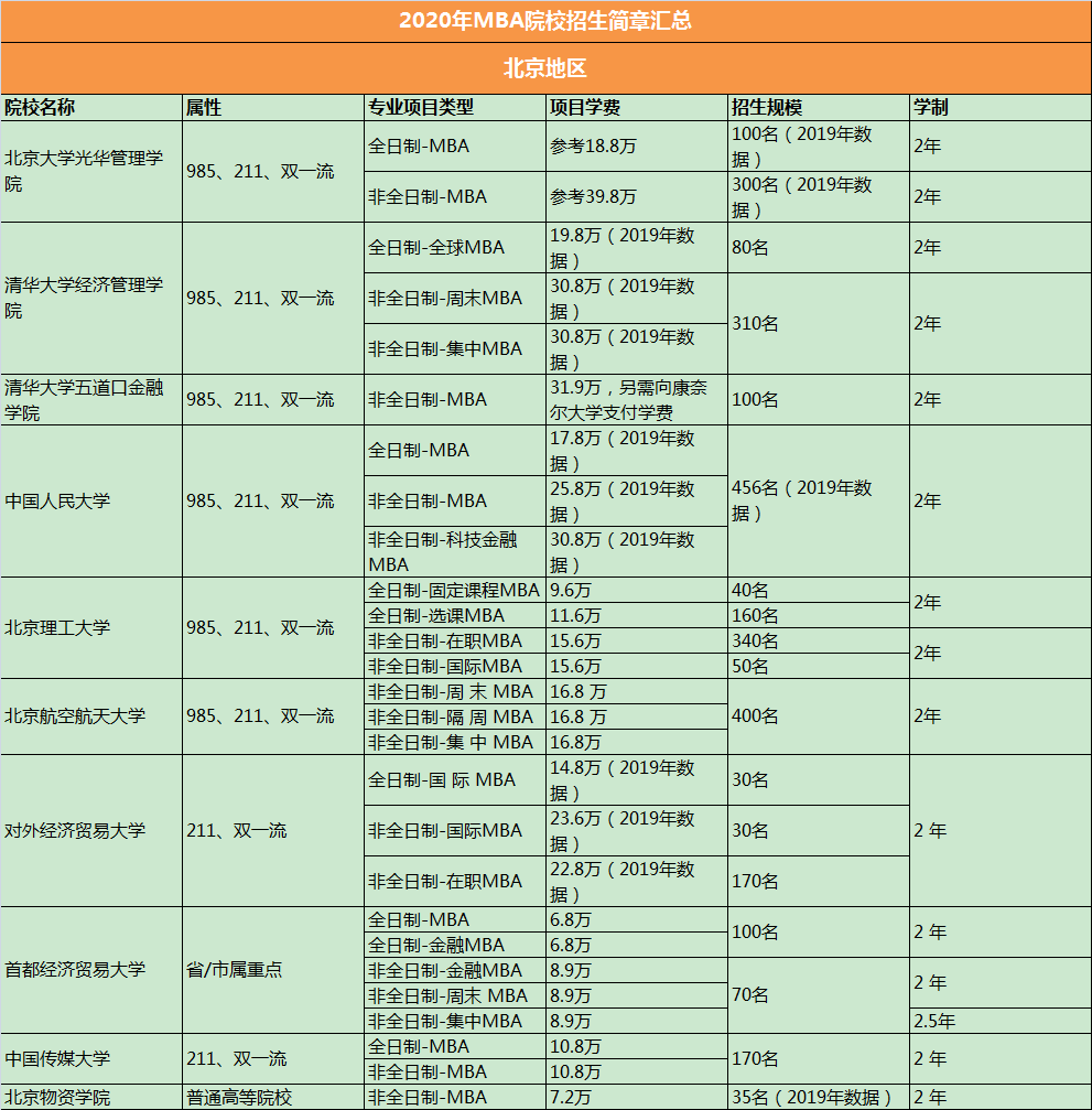 北京MBA_2020年MBA院校招生簡(jiǎn)章匯總