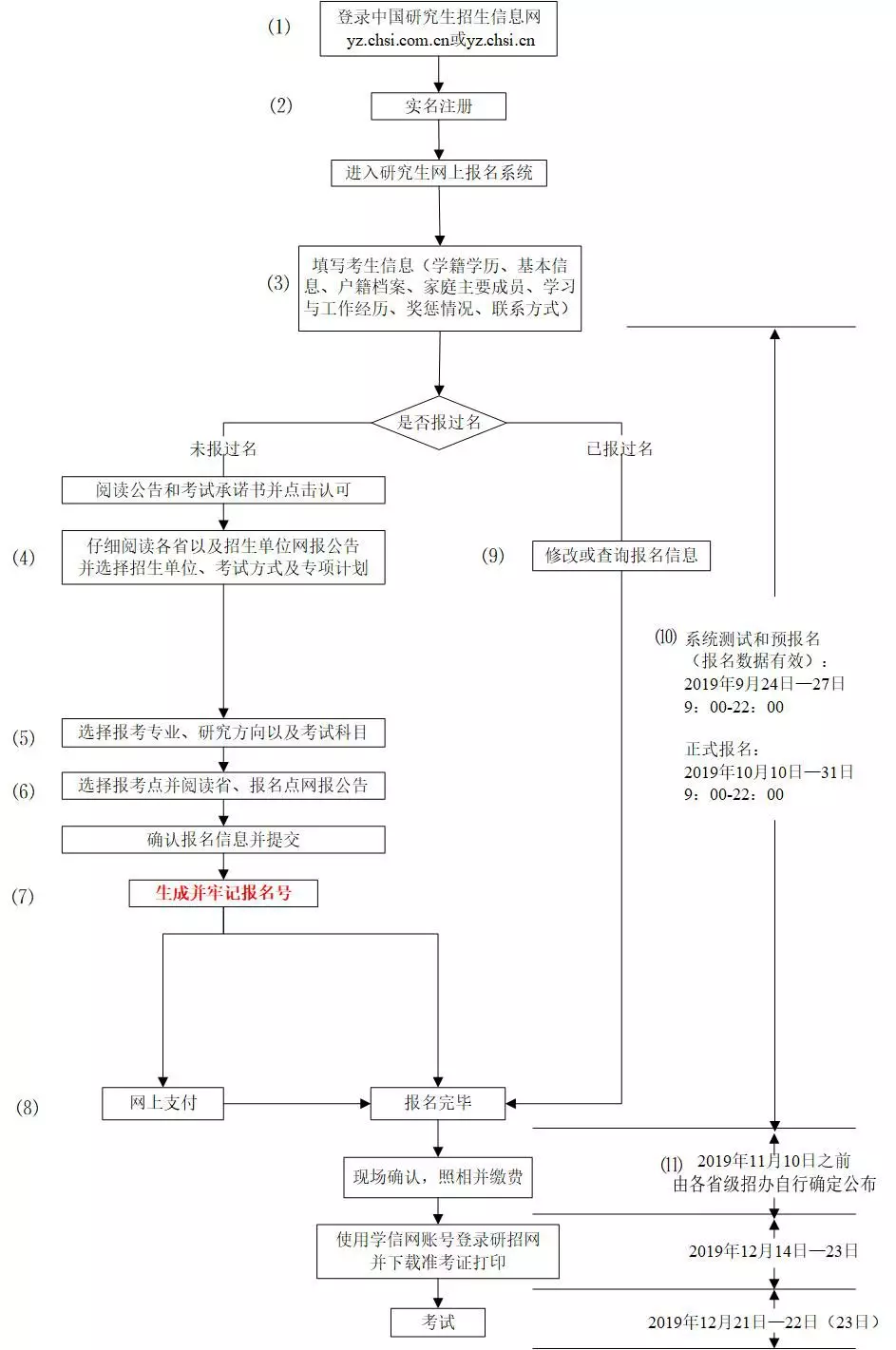 所以,如果你已經(jīng)確定了目標(biāo)院校,那你就可以直接參加預(yù)報(bào)名,提前占考點(diǎn);如果你現(xiàn)在還在等提前面試成績(jī),那就可以等到正式報(bào)名(網(wǎng)上報(bào)名時(shí)間為2019年10月10日至10月31日,每天9:00-22:00)的時(shí)候再報(bào)名,不過(guò)也要抓緊了,不要拖到最后幾天,很容易遇到系統(tǒng)癱瘓的狀況。