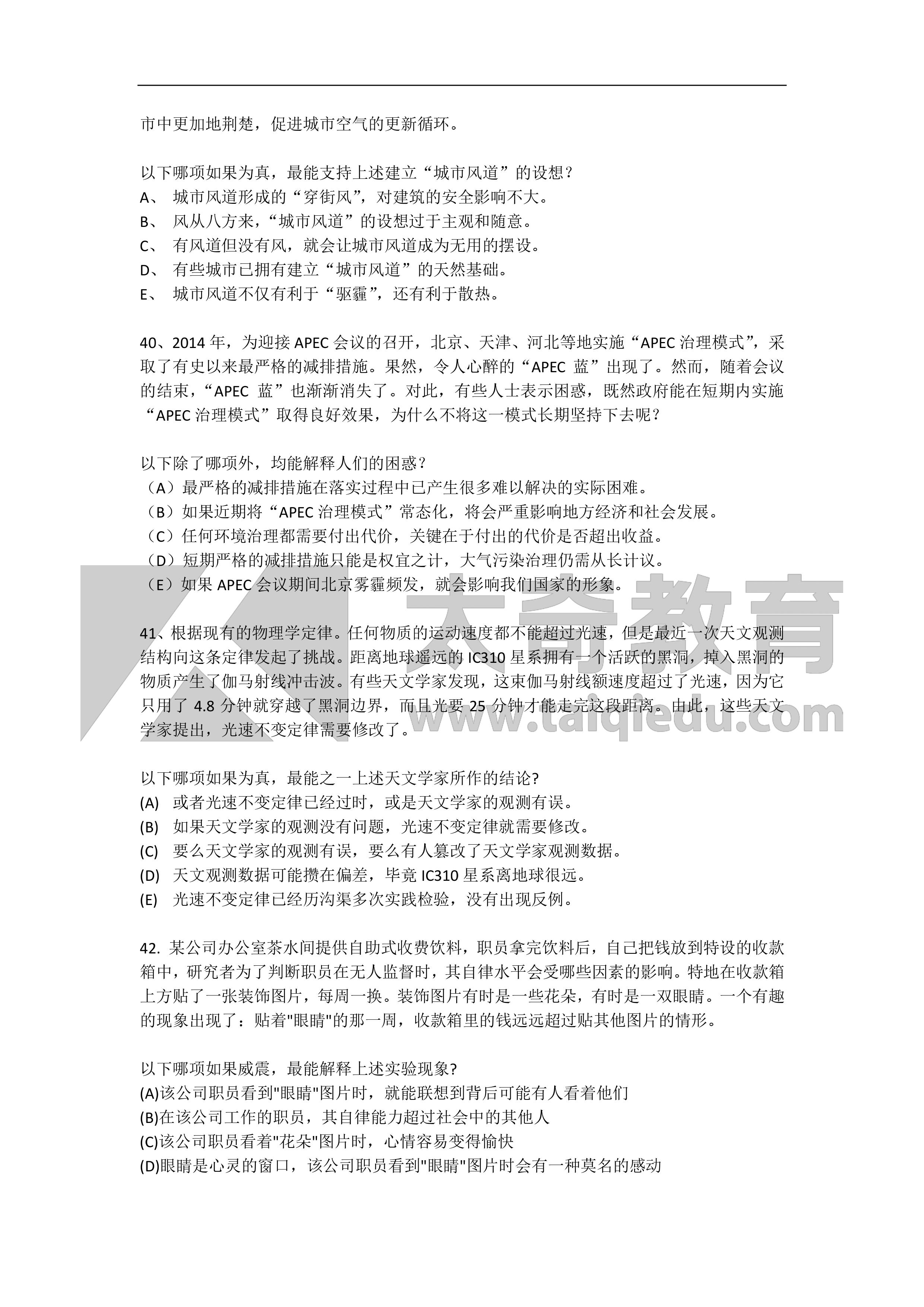 2016MBA管理類聯(lián)考邏輯真題(5)