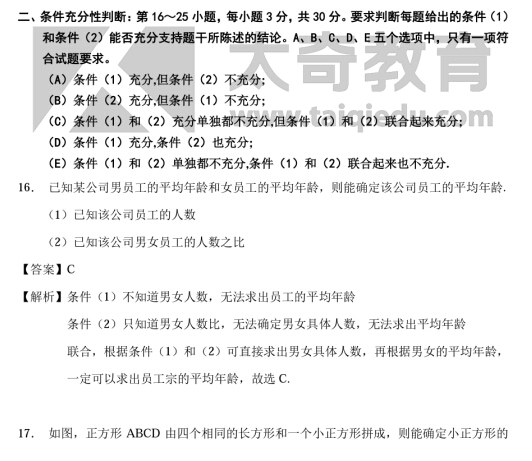 2016MBA管理類聯(lián)考數(shù)學真題解析:條件充分性判斷