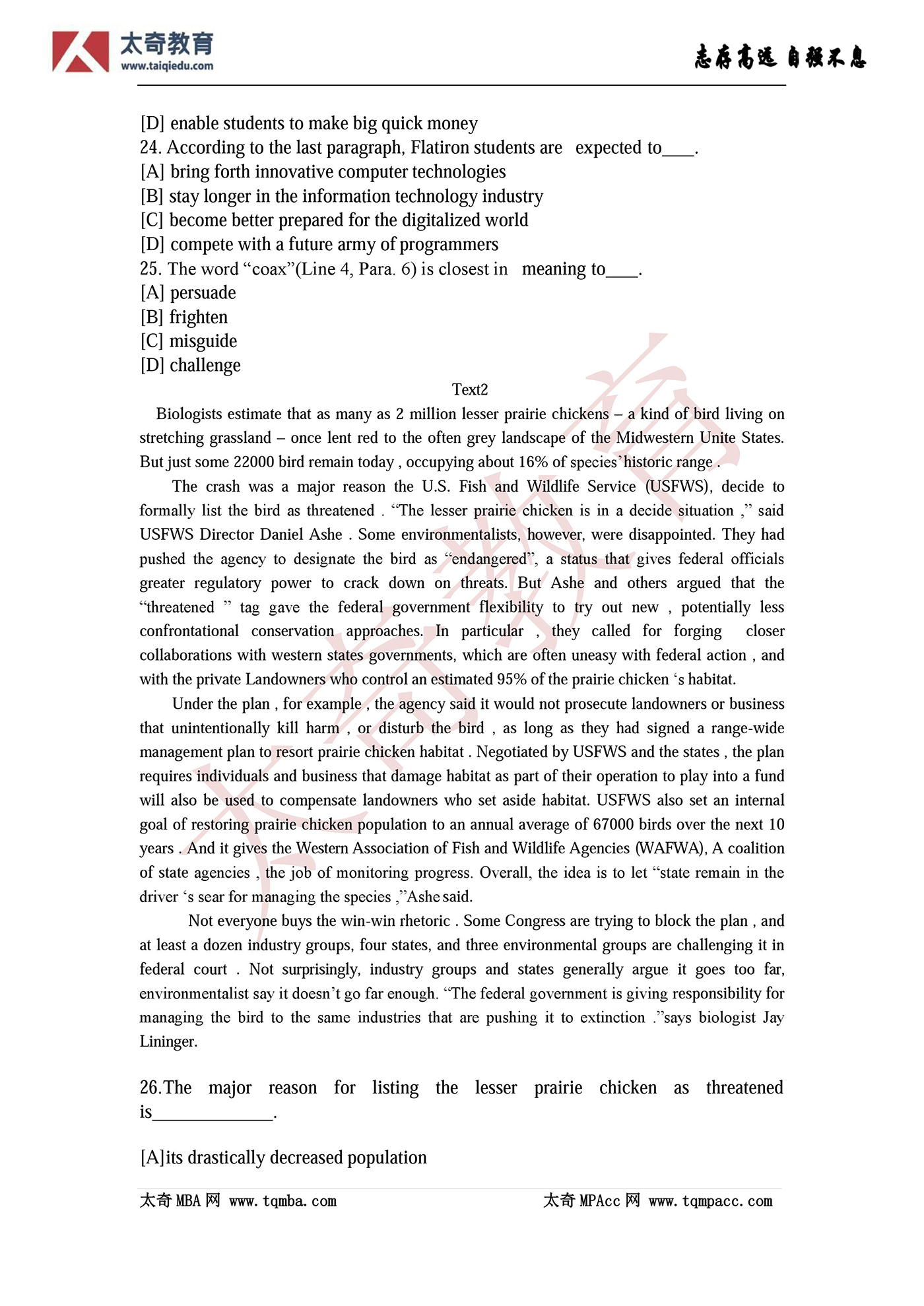 2016MBA管理類聯(lián)考英語(yǔ)(二)真題完整版(4)