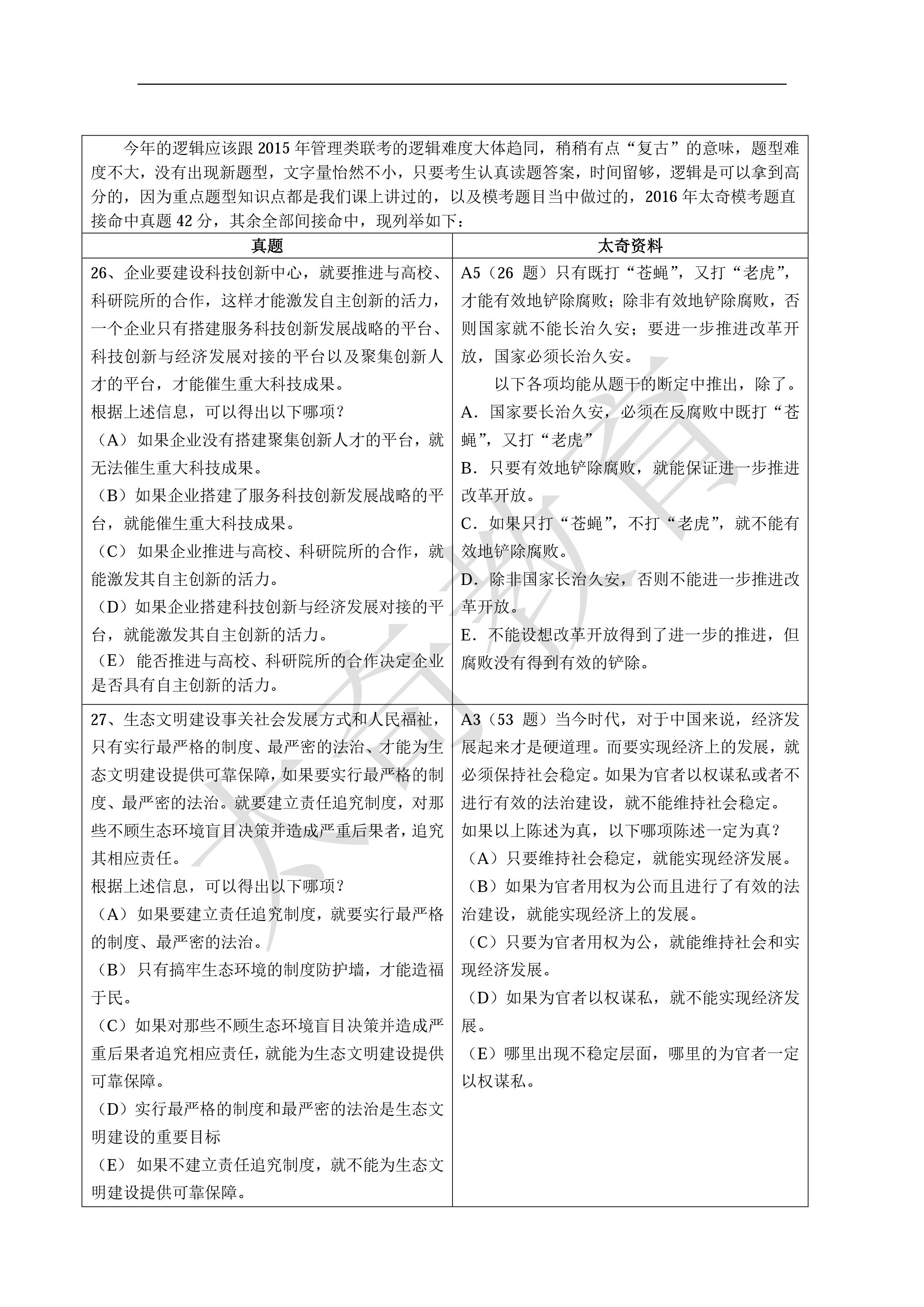 祝賀太奇教育2016管理類聯(lián)考邏輯直接命中42分