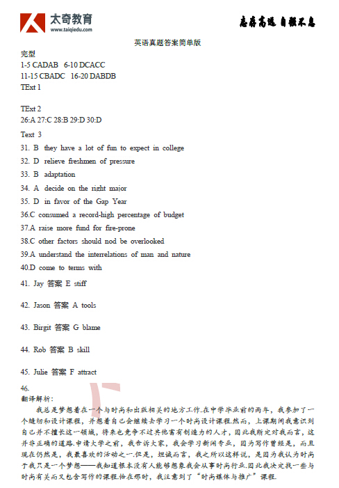 2017年MBA管理類聯(lián)考英語(二)真題答案