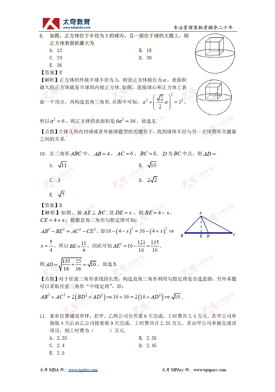 2019年管理類聯(lián)考數(shù)學(xué)真題+解析(太奇官方版)(4)