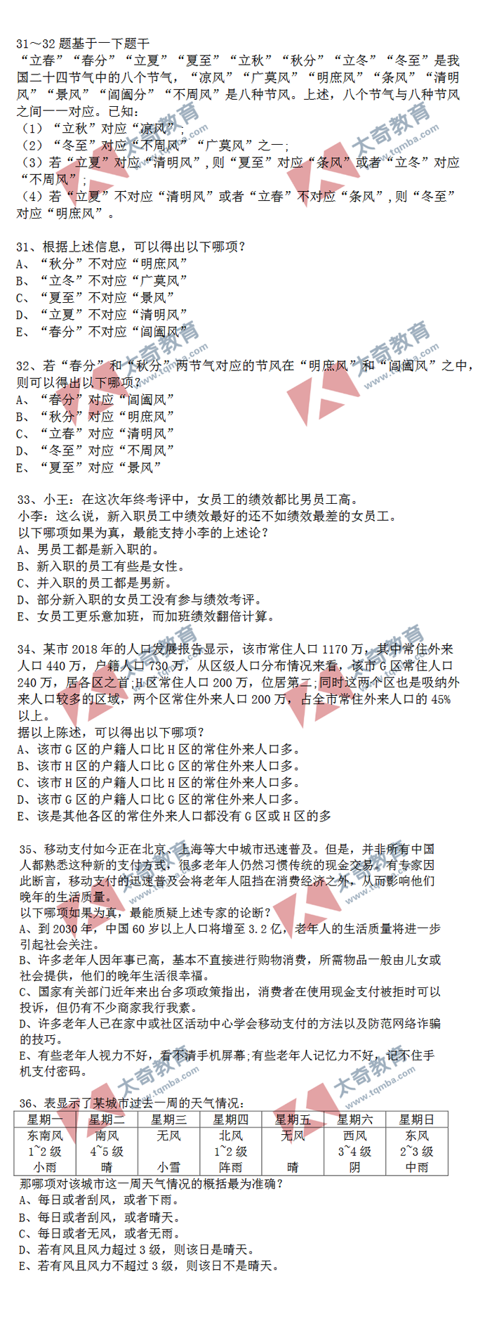 2020年MBA/MEM管理類聯(lián)考邏輯真題(2)