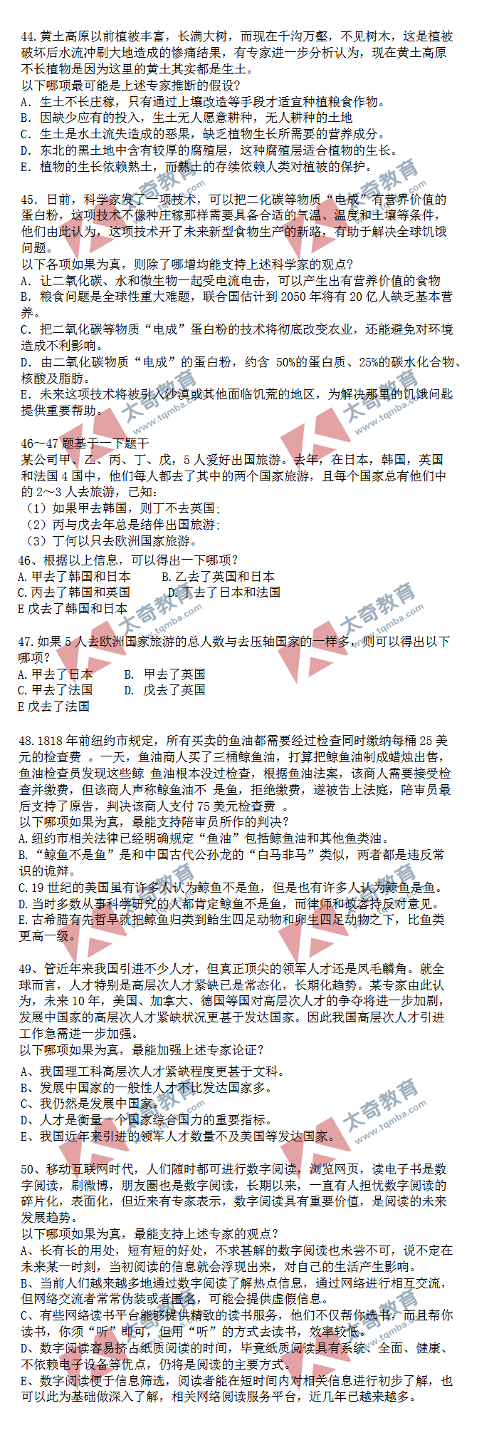 2020年MBA/MEM管理類聯(lián)考邏輯真題(4)