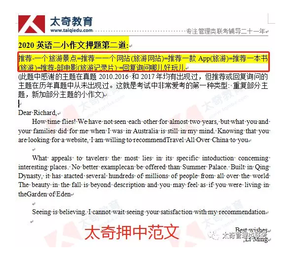 喜賀太奇2020管理類聯(lián)考英語(yǔ)大小作文全部命中
