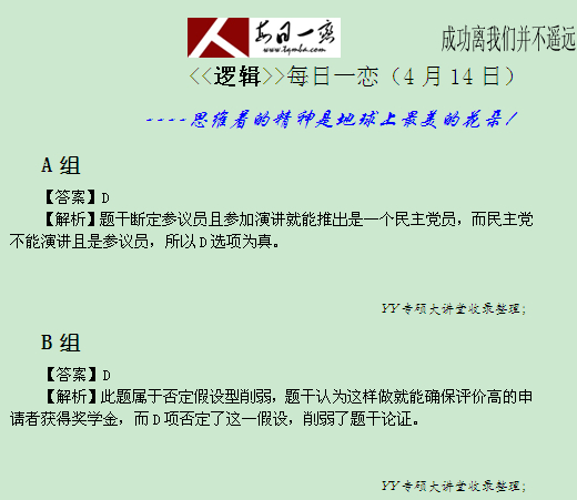 【太奇MBA 2014年4月14日】 MBA邏輯每日一練