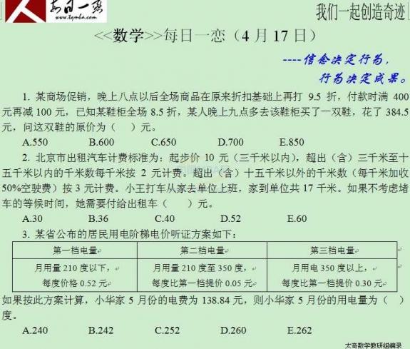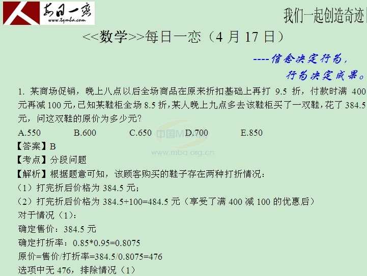 【太奇MBA 2014年4月17日】 MBA數(shù)學(xué)每日一練