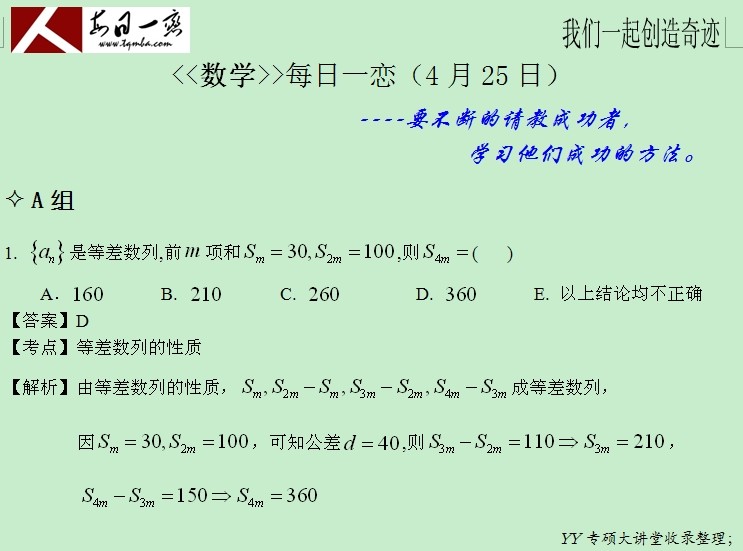 【太奇MBA 2014年4月25日】 MBA數(shù)學每日一練