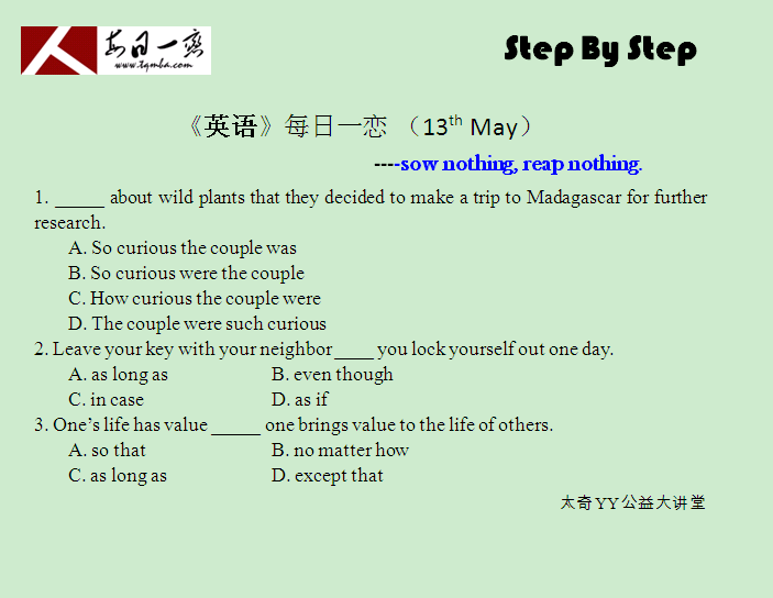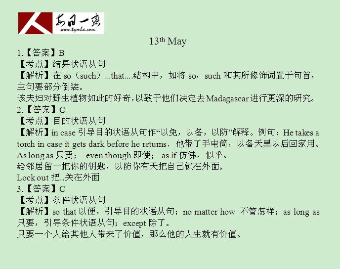 【太奇MBA 2014年5月13日】 MBA英語(yǔ)每日一練