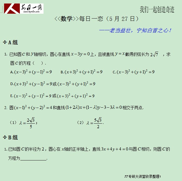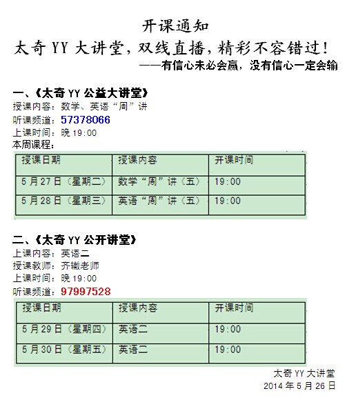 管理類碩士官方備考群,考生互動(dòng),擇校評(píng)估,真題討論 點(diǎn)擊加入備考群>>從本周一(5月26日)開(kāi)始,每日一“戀”各科不再發(fā)放詳解,相關(guān)題目解析每周在太奇YY大講堂由老師進(jìn)行統(tǒng)一講解,每周課程在太奇YY大講堂萬(wàn)人備考群進(jìn)行公布,YY群號(hào):9444754 YY聽(tīng)課頻道:57378066
