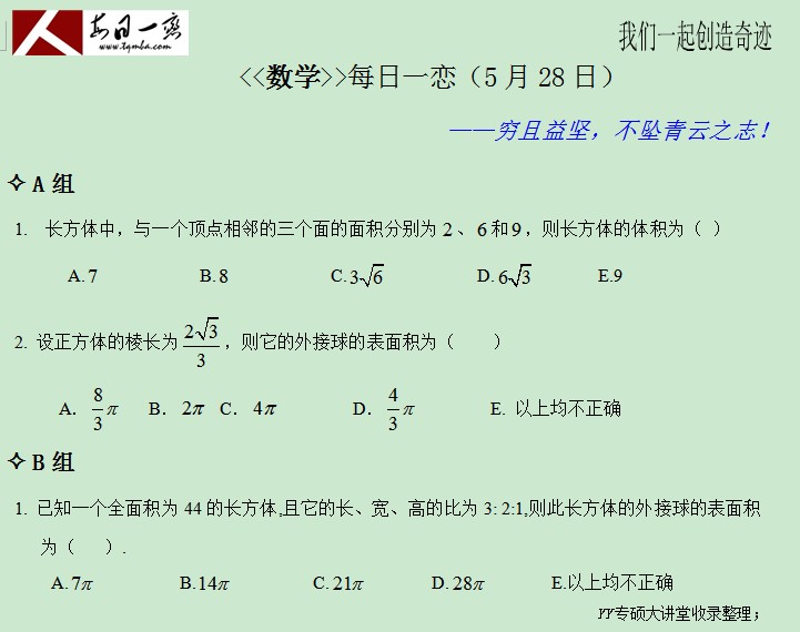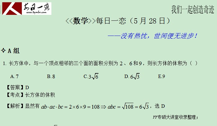 管理類碩士官方備考群,考生互動(dòng),擇校評估,真題討論 點(diǎn)擊加入備考群>>從本周一(5月26日)開始,每日一“戀”各科不再發(fā)放詳解,相關(guān)題目解析每周在太奇YY大講堂由老師進(jìn)行統(tǒng)一講解,每周課程在太奇YY大講堂萬人備考群進(jìn)行公布,YY群號:9444754 YY聽課頻道:57378066