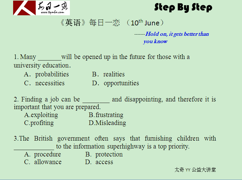 【太奇MBA 2014年6月10日】 MBA英語(yǔ)每日一練