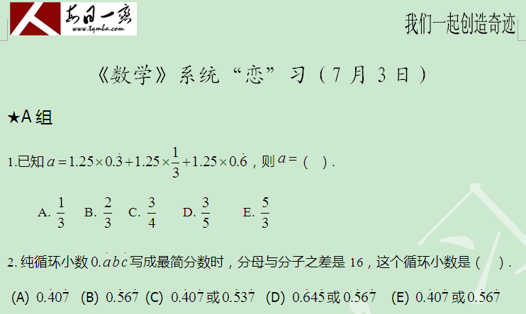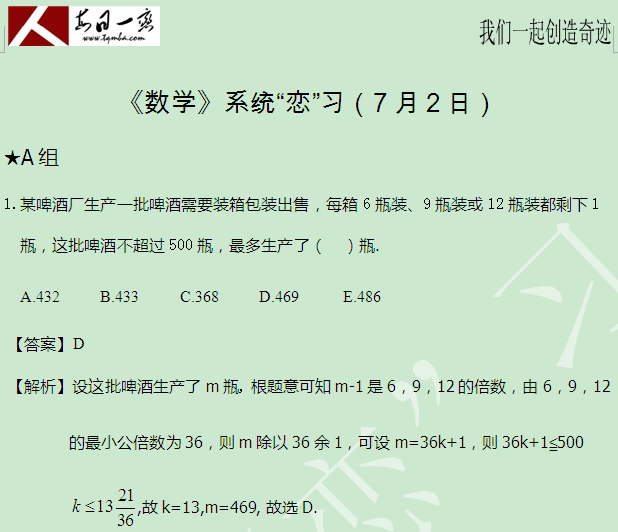 【太奇MBA 2014年7月3日】 MBA數(shù)學(xué)每日一練