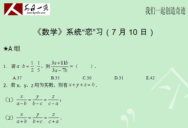 【太奇MBA 2014年7月10日】 MBA數(shù)學(xué)每日一練