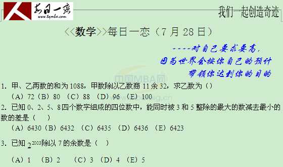 【太奇MBA 2015年7月28日】MBA數(shù)學(xué)每日一練