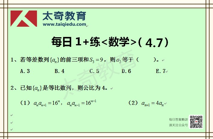 太奇MBA管理類聯(lián)考數學每日一練 4-7