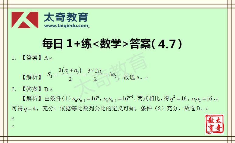 太奇MBA管理類聯(lián)考數學每日一練 3-31