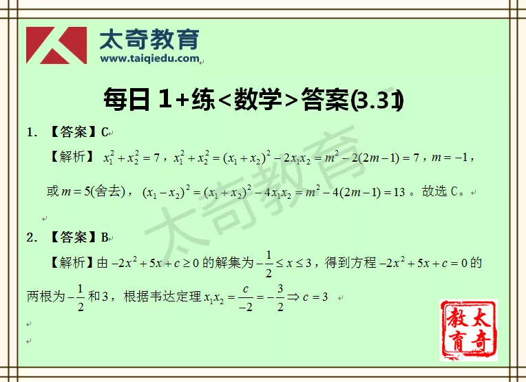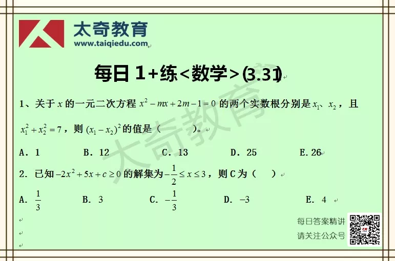 太奇MBA管理類聯(lián)考數(shù)學(xué)每日一練 3-31