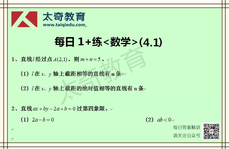 太奇MBA管理類聯(lián)考數(shù)學(xué)每日一練 4-1