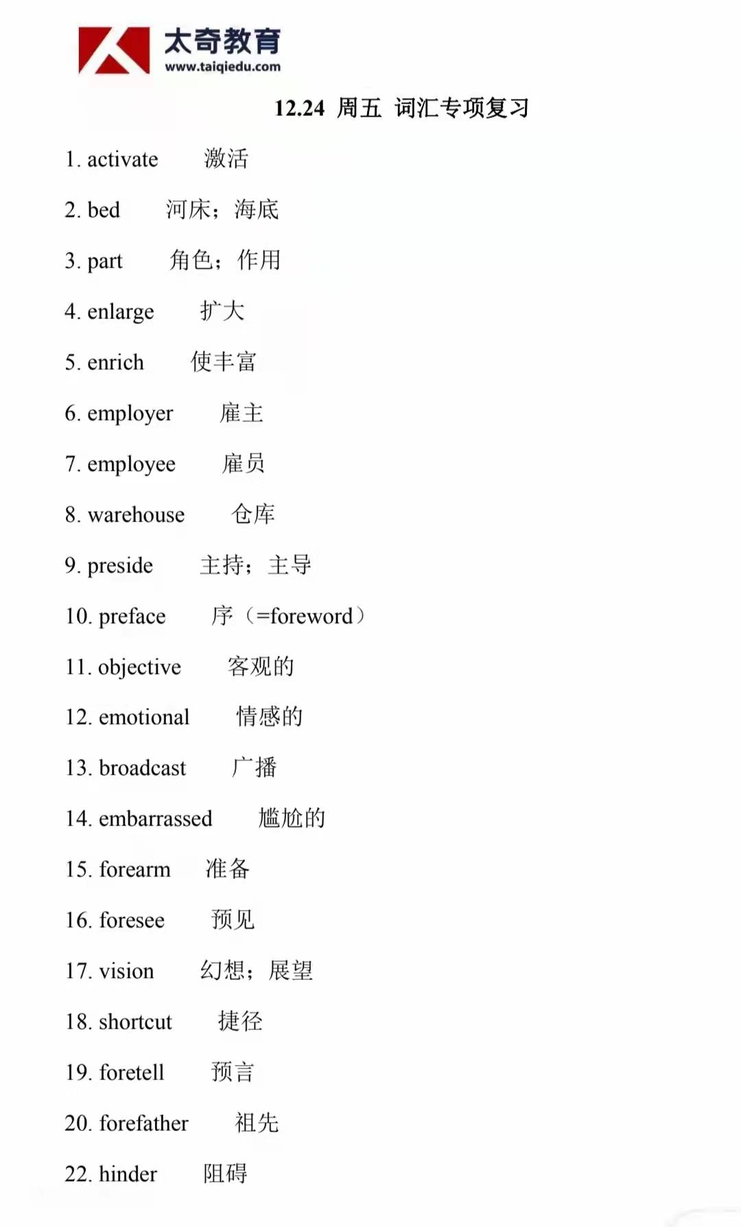 12月24日詞匯專項復習