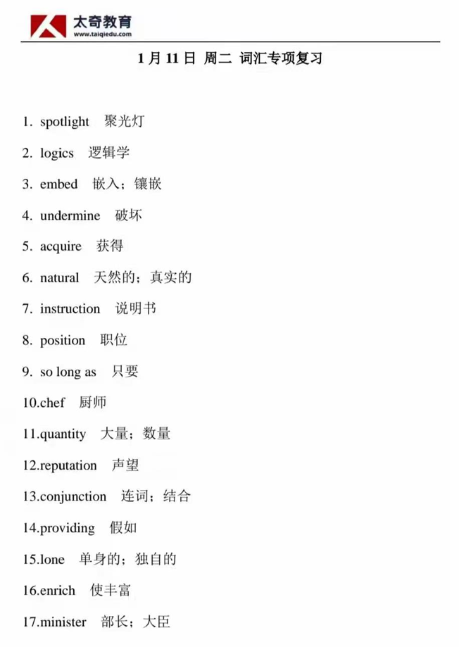 1月11日詞匯專項(xiàng)復(fù)習(xí)