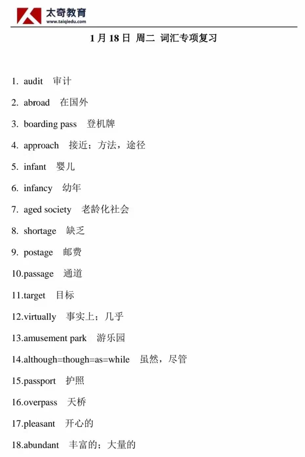 1月18日詞匯專項(xiàng)練習(xí)