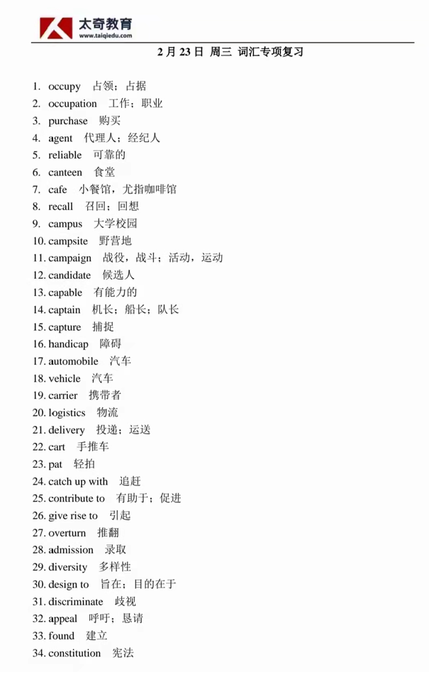 2月23日詞匯專項(xiàng)練習(xí)