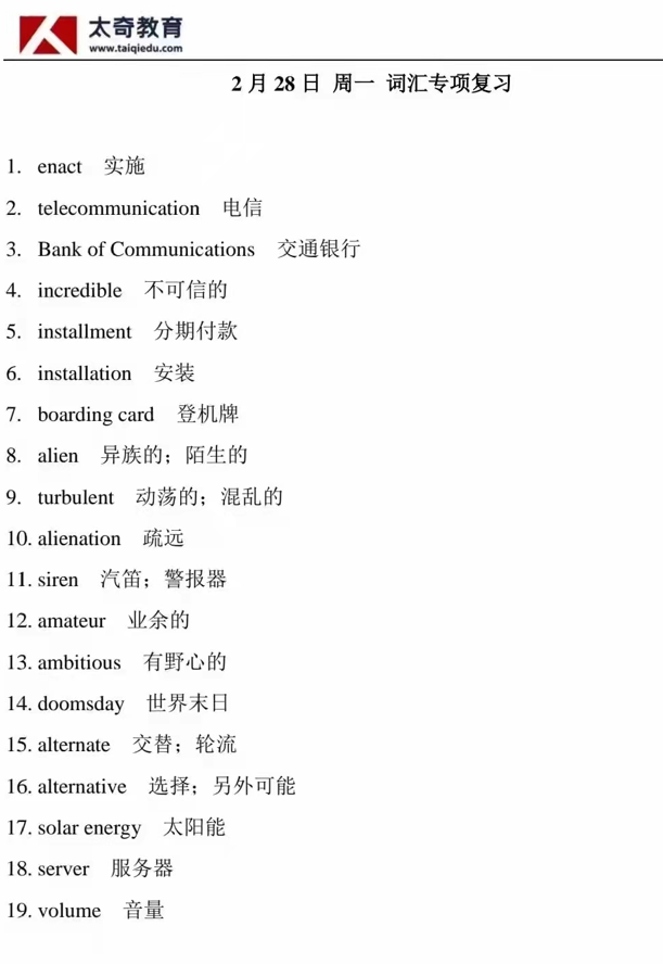 2月28日詞匯專項練習(xí)