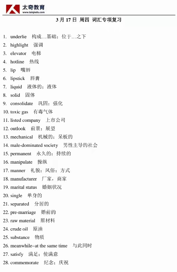 3月17日詞匯專(zhuān)項(xiàng)練習(xí)