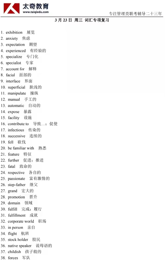 3月23日詞匯專項(xiàng)練習(xí)