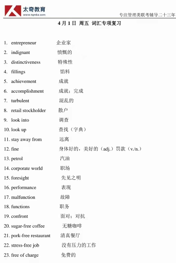 4月1日詞匯專項(xiàng)練習(xí)