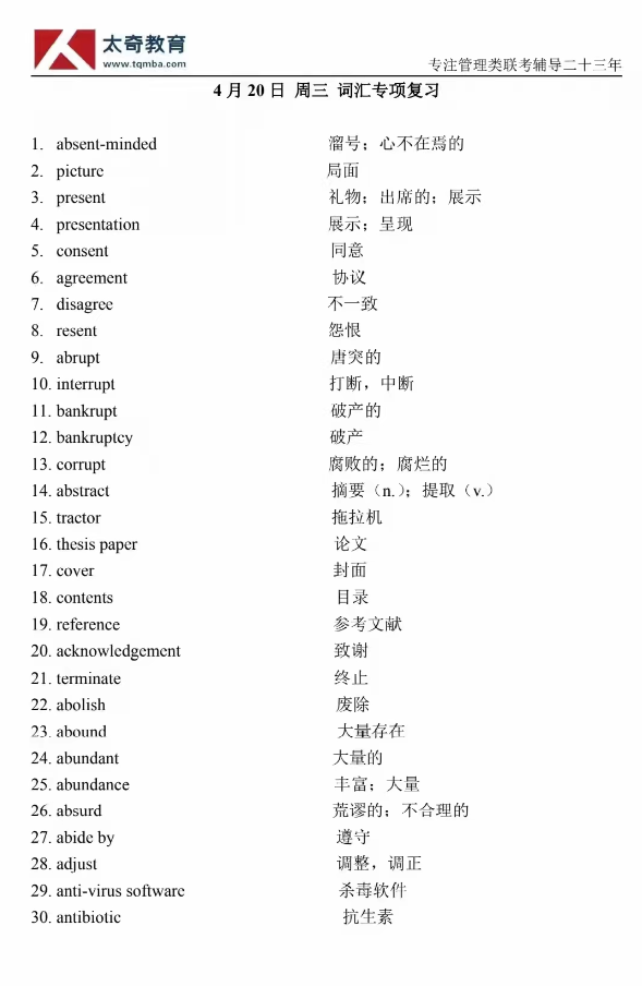 4月20日詞匯專項練習
