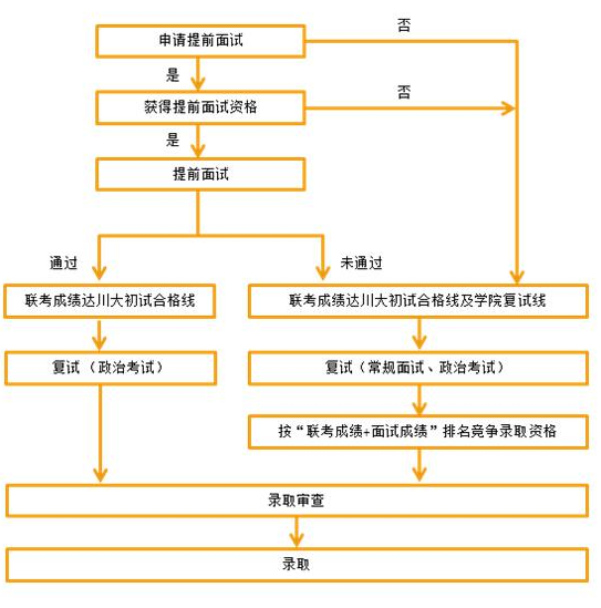 1、所有符合全國MBA聯(lián)考報考條件的考生均可申請參加提前面試,學(xué)院根據(jù)提前面試成績給予考生 “通過”和“未通過”兩類結(jié)果。