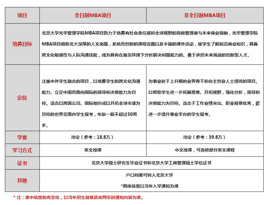 北京大學(xué)光華管理學(xué)院MBA2020年招生包含全日制MBA和非全日制MBA項(xiàng)目。