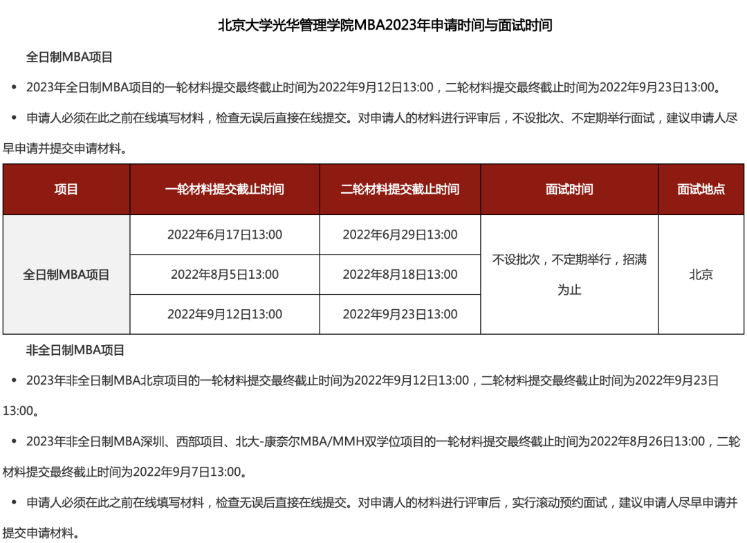 北京大學(xué)光華管理學(xué)院2023年MBA提前面試申請及時間安排
