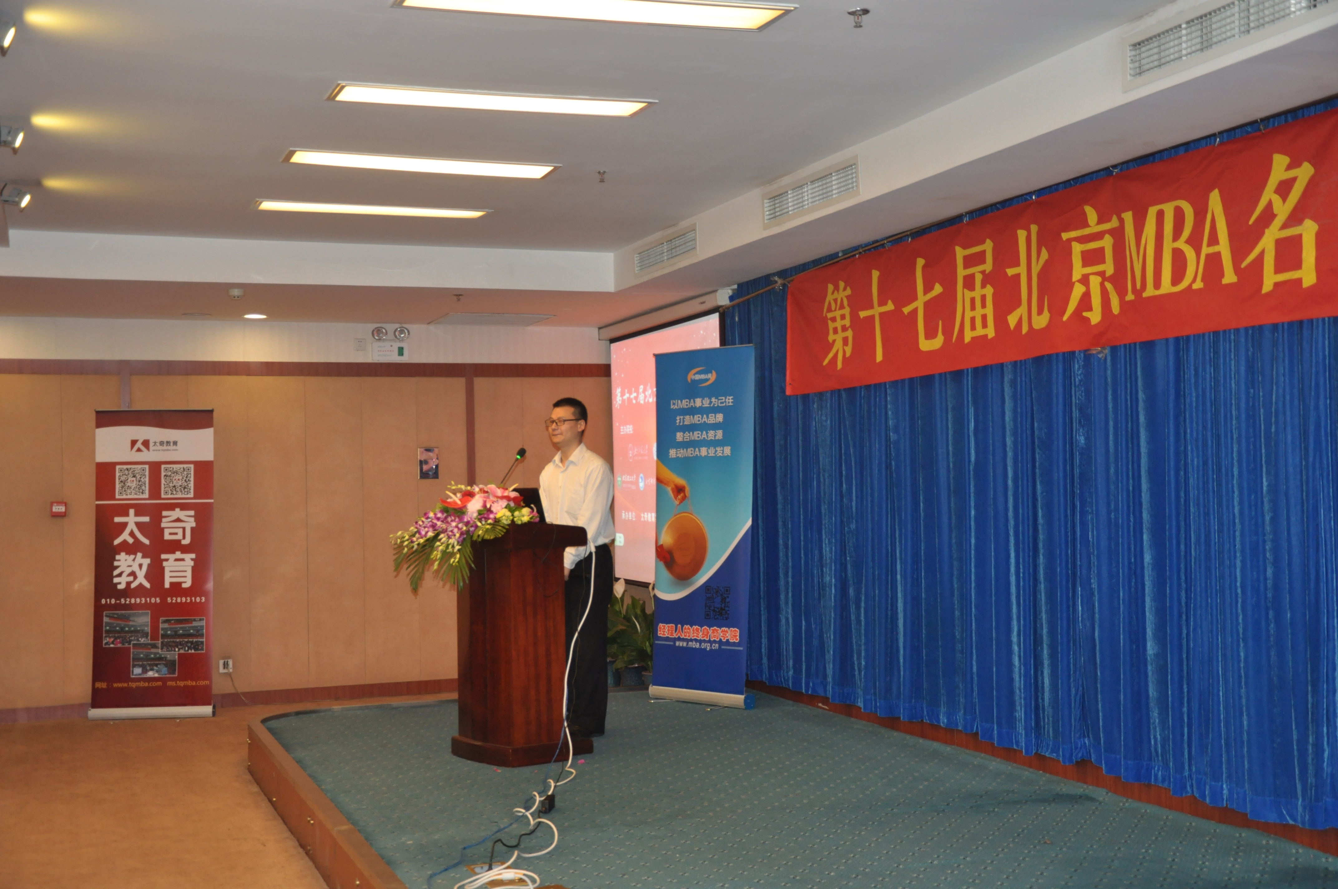 北師經(jīng)濟(jì)與工商管理學(xué)院副院長楊澄宇教授作為此次主辦方之一兼場地承辦方率先致辭,并預(yù)祝此次“北京MBA院校教育展暨2016年MBA院校招生政策發(fā)布會”圓滿成功。隨后由太奇MBA專碩項目部部長孔孟林老師為此次院校巡展會作開幕致辭,在談到此次巡展舉辦初衷時,孔老師表示:太奇MBA自聯(lián)考輔導(dǎo)成立以來,已走過17個年頭,積累了大量的院校私密人脈,為數(shù)十萬MBA考生圓夢MBA名校夢,也希望在2016年MBA成就更多考生的名校夢!