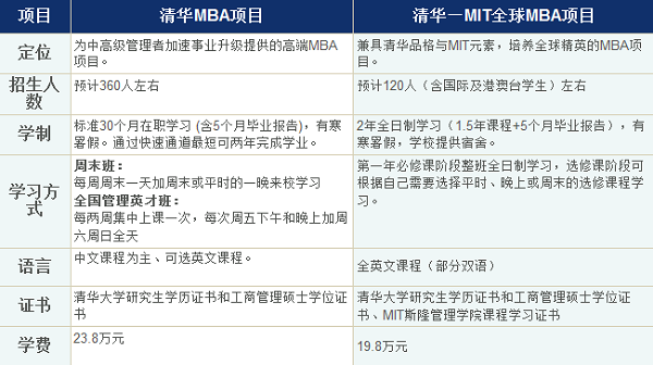 1、設清華—MIT全球MBA項目和清華MBA項目(在職)