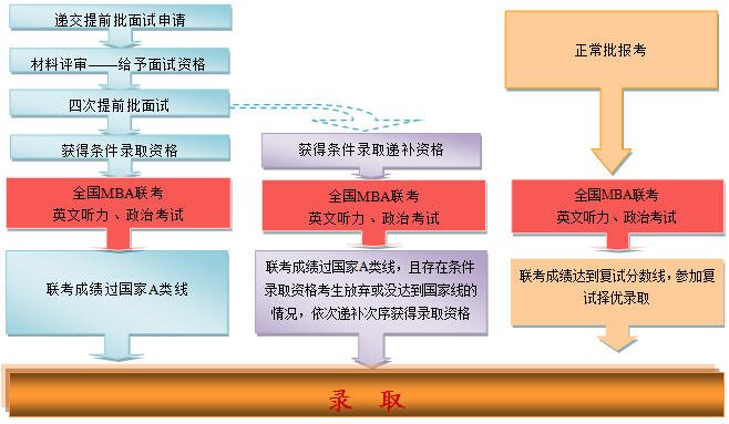 登錄中國(guó)人民大學(xué)商學(xué)院MBA項(xiàng)目中心網(wǎng)站“考生服務(wù)系統(tǒng)”,按照規(guī)定時(shí)間提交網(wǎng)上申請(qǐng)及書面申請(qǐng)材料,學(xué)院將組織專家評(píng)審申請(qǐng)材料,擇優(yōu)給予提前面試資格并組織面試。面試后獲得條件錄取資格和條件錄取遞補(bǔ)資格的考生需參加2016年1月舉行的全國(guó)聯(lián)考。
