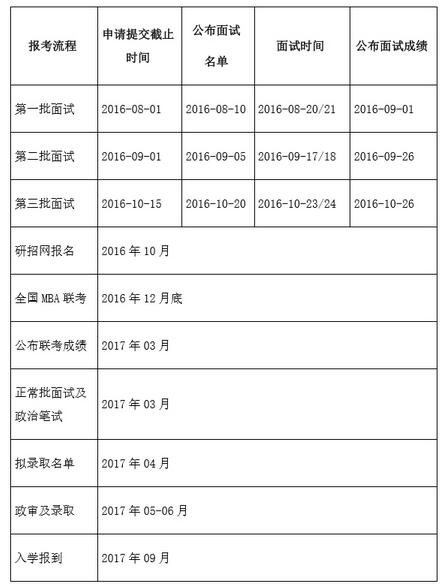 2017年MBA招生將采取提前批面試方式。提前批面試取得“條件錄取資格”計劃數(shù)為招生計劃總數(shù)的50%。(詳細方案見第六部分)