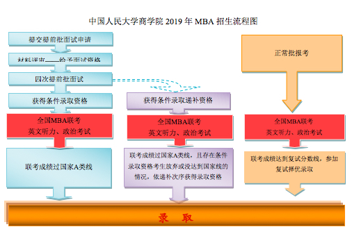 登錄中國人民大學(xué)商學(xué)院MBA項目中心網(wǎng)站“考生服務(wù)系統(tǒng)”,按照規(guī)定時間提交網(wǎng)上申請材料,學(xué)院將組織專家評審申請材料,擇優(yōu)給予提前面試資格并組織面試。面試后獲得條件錄取資格和條件錄取遞補資格的考生需參加2018年12月底舉行的全國聯(lián)考。