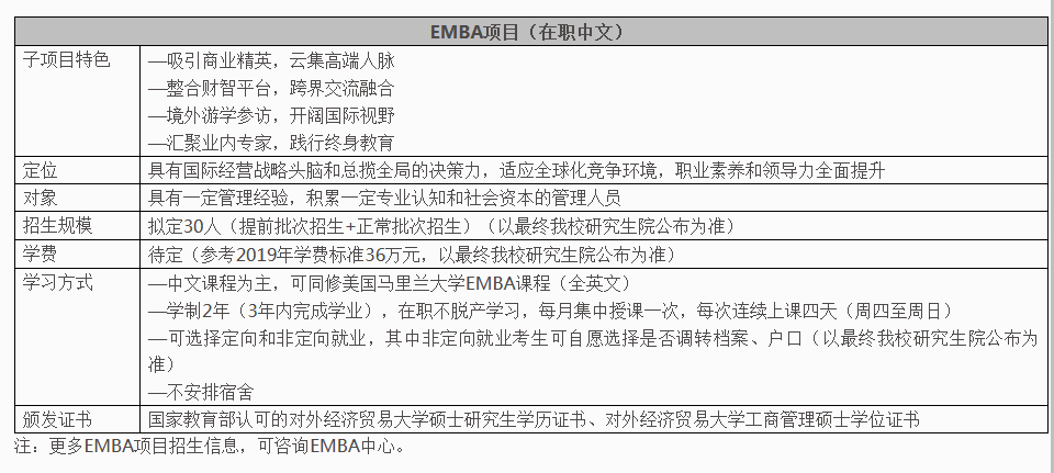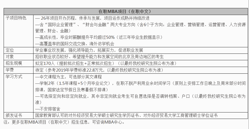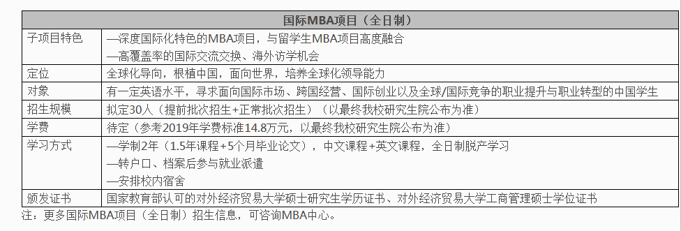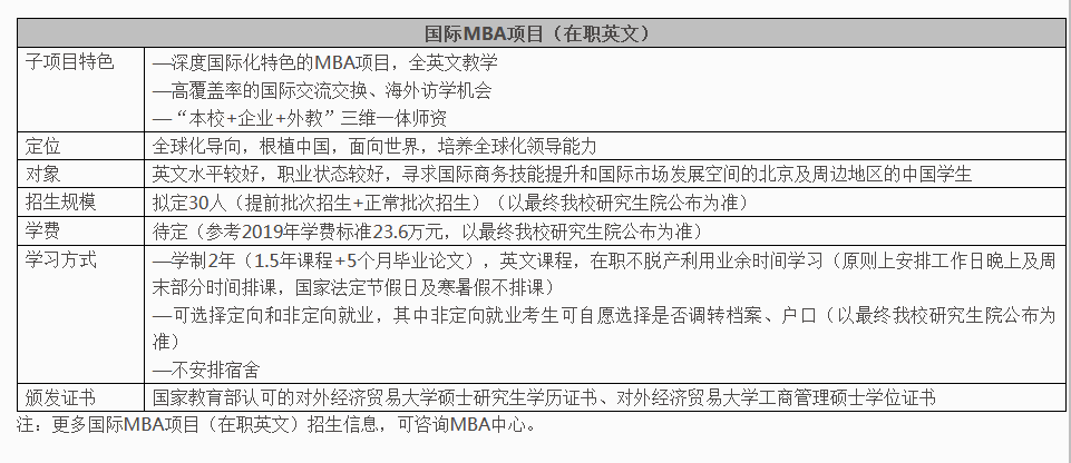 2020年對外經(jīng)濟貿(mào)易大學MBA項目招生政策:
