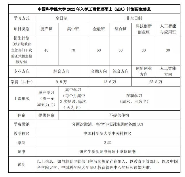 中國科學(xué)院大學(xué)2022年工商管理碩士(MBA)招生簡章