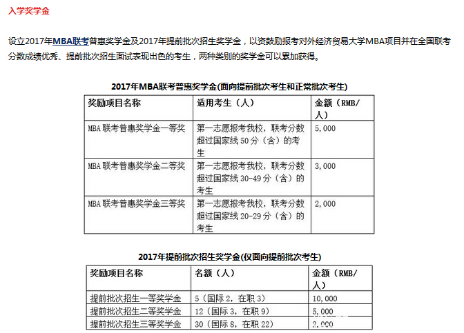 2017年對外經(jīng)濟貿(mào)易大學MBA項目招生政策: