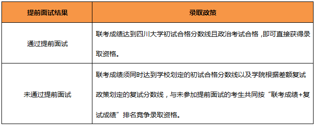 1、所有符合全國聯(lián)考報考條件的考生均可申請參加提前面試,學院根據(jù)提前面試成績給予考生 “通過”和“未通過”兩類結(jié)果。