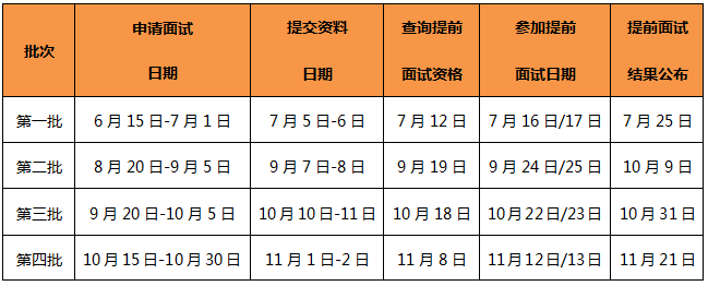 每位考生只能申請一個批次的提前面試,不可重復(fù)申請。