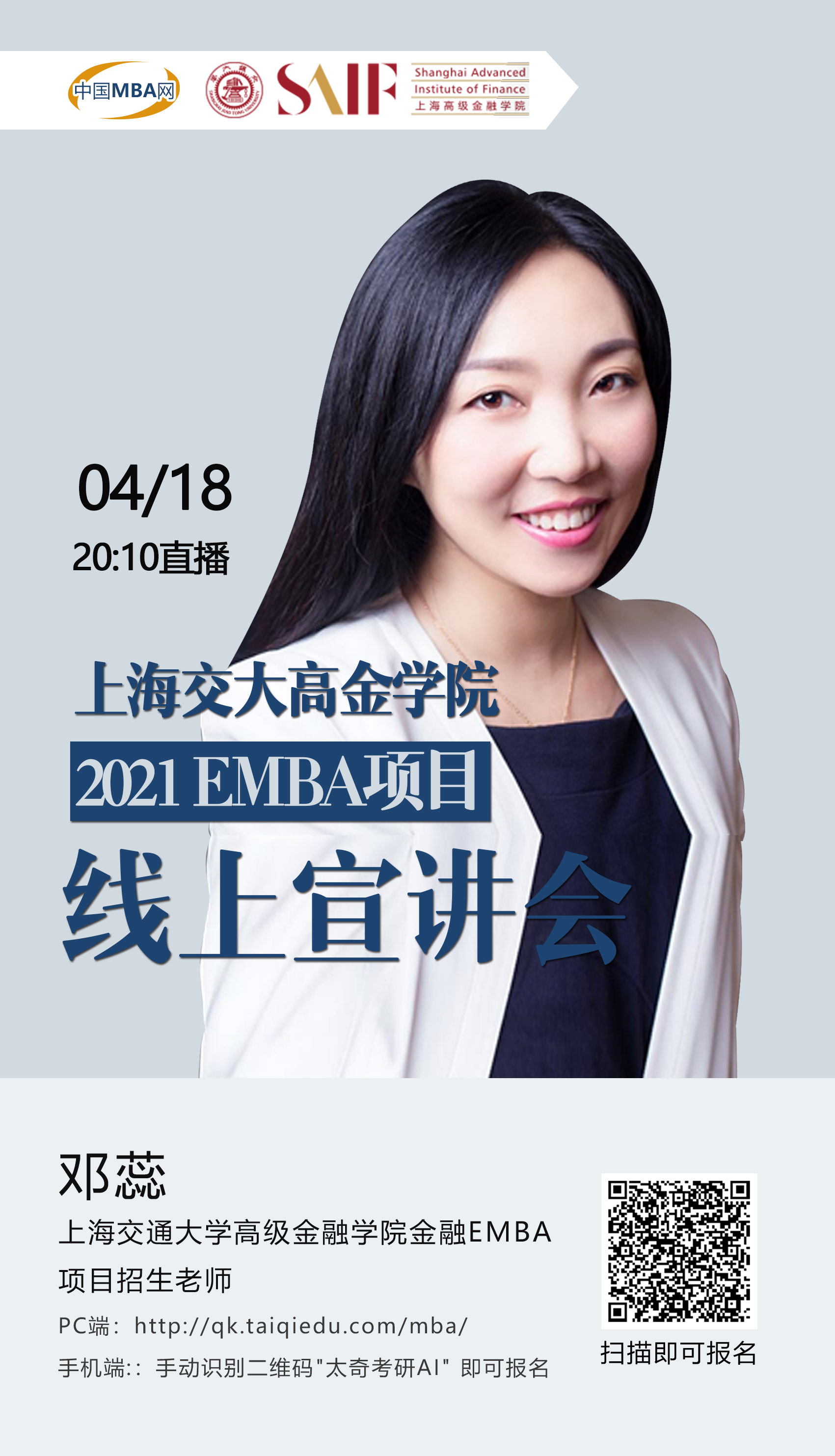 2021年上海交大高金學(xué)院MBA/EMBA/MEM教育巡展暨招生政策發(fā)布會(huì)(直播)