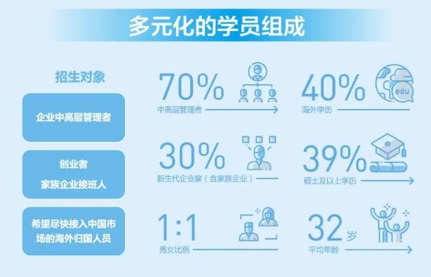 A:來自創(chuàng)新創(chuàng)業(yè)、金融與投資、文化產(chǎn)業(yè)、智能制造、大健康、高新科技行業(yè),管理經(jīng)驗不少于9年的中高層管理者。